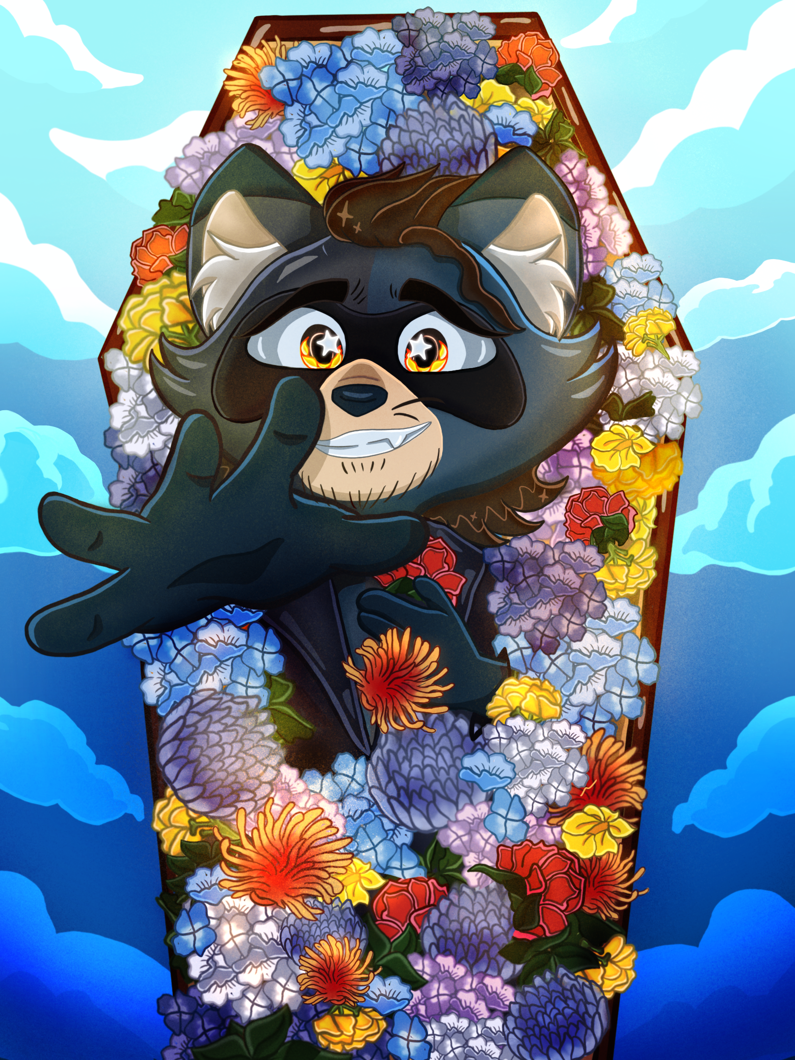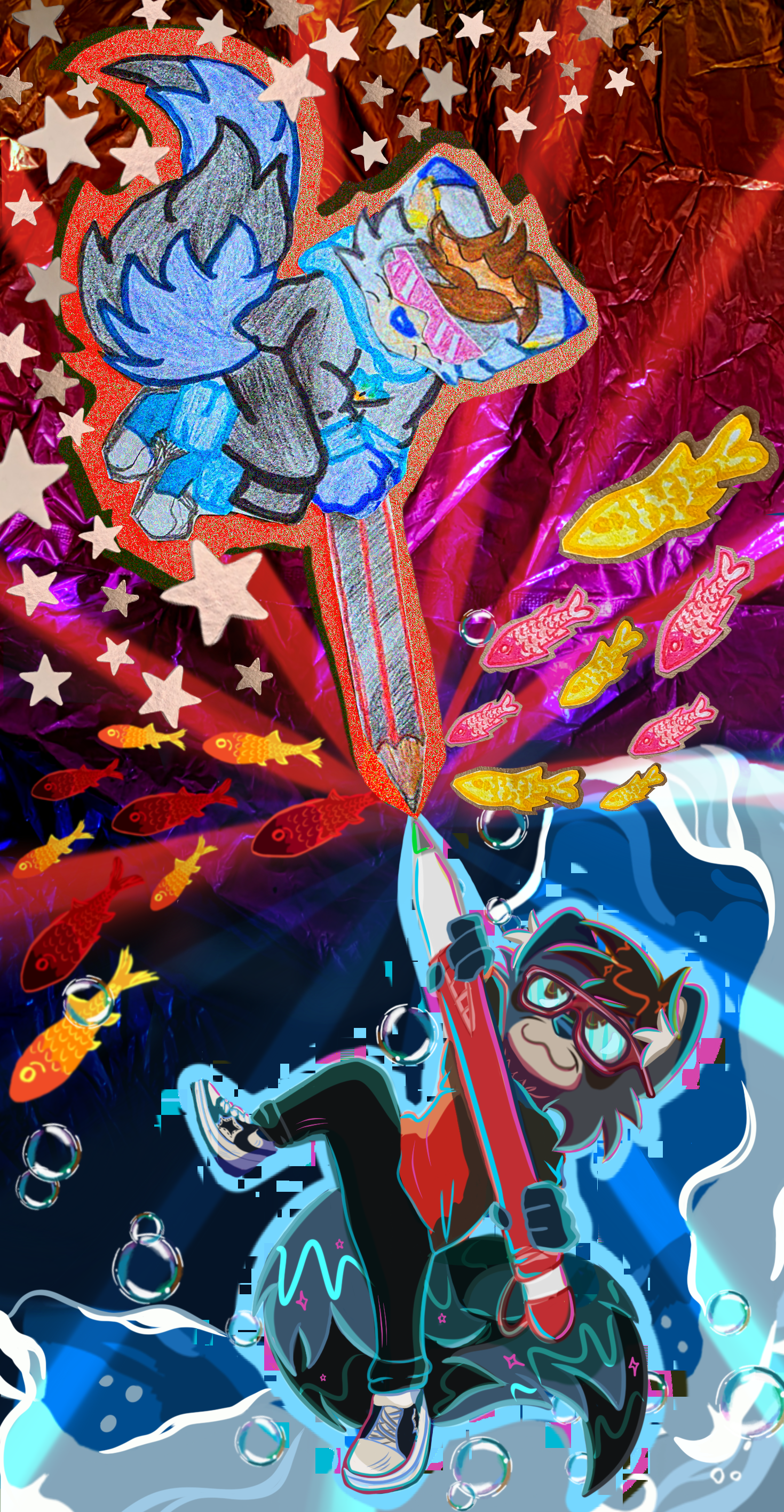 Fun fact: the "spacey" background is a piece of a birthday balloon I held onto for some "miscellaneous future art project" I always hang onto little keepsakes for this reason but rarely actually get to the "future art project" part, so it was satisfying to see this balloon shine somewhere again. ๐